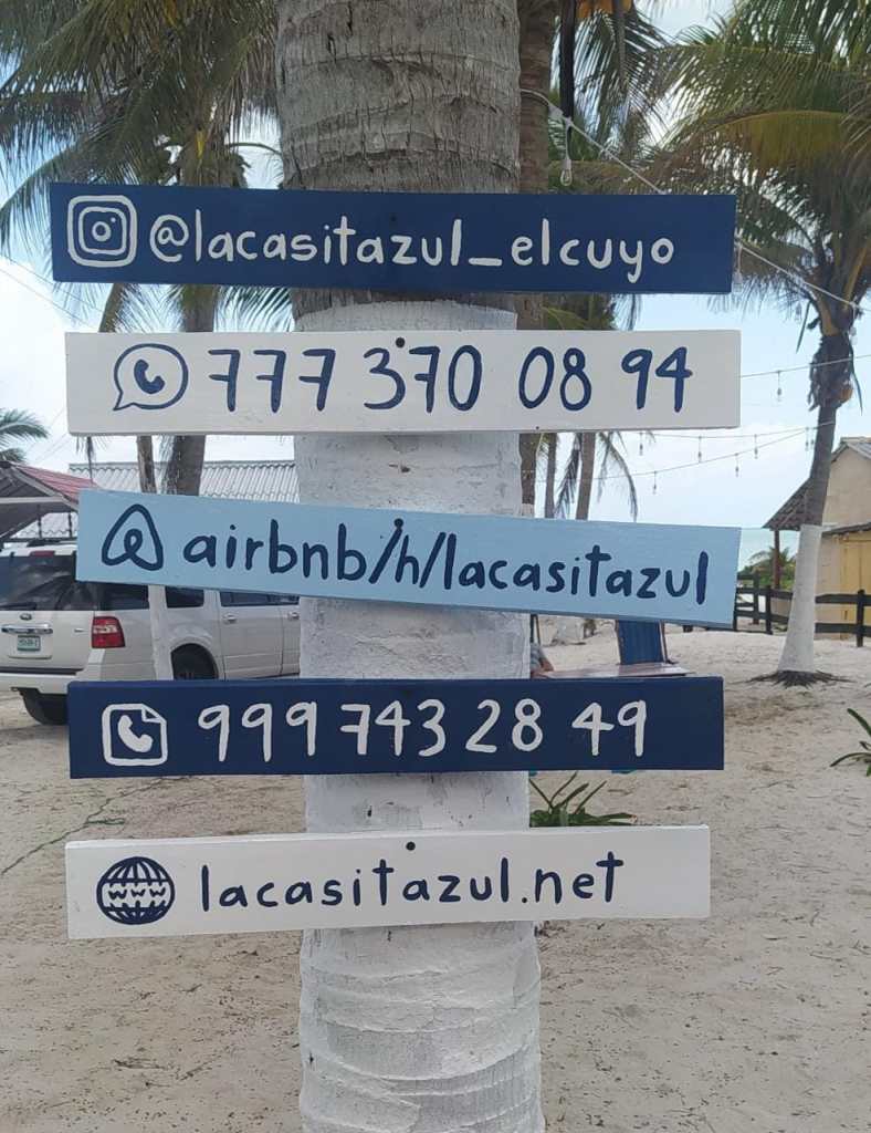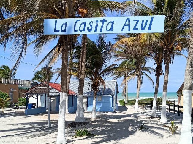 La Casita Azul es una cabaña de madera de construcción original de 1975, ubicada a la orilla del mar en una de las playas mas hermosas y tranquilas de Yucatán, El Cuyo.